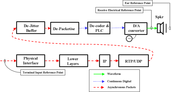 Mitigation: To control latency, one should minimize unnecessary buffering (while still using enough jitter buffer to handle jitter), use faster networks/QoS for propagation, and avoid long serialization delays (e.g., use appropriate packetization – smaller packets reduce per-packet serialization delay at the cost of overhead). Many VoIP codecs add some algorithmic delay (lookahead, frame size); using a low-delay codec can help if latency is critical. For echo, deploy echo cancellers (per ITU-T G.168) in gateways or phones to remove line echo up to the expected tail length. Well-implemented echo cancellation is essential especially when delays are moderately high.