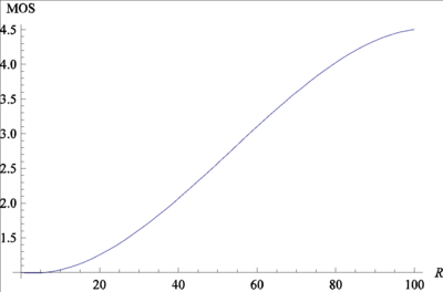 MOS to R-factor conversion curve showing the nonlinear relationship